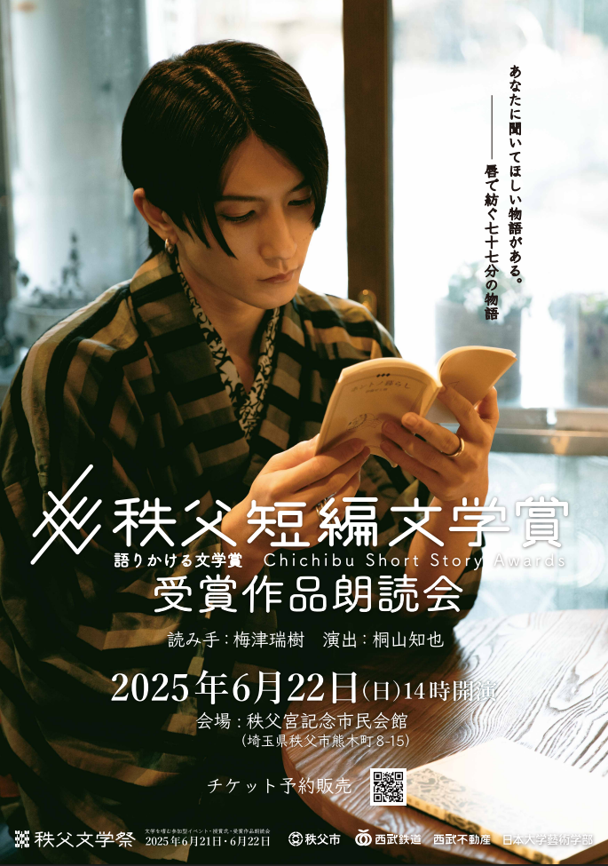 (https://www.seiburealestate.co.jp/news/detail/news269.html)で行う「秩父短編文学賞」の授賞式および受賞作品朗読会のチケットを、4 月 20 日(日)より、以下のプレイガイドにおいて販売を開始いたします。また、朗読会については、4 月 13 日(日)より先着先行販売を実施いたします。