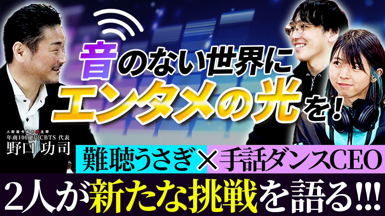 今回のコラボ動画では、7回の転職を経て一代で年商100億円企業を築いた起業家 野口功司が、ビジネスの世界にはなかなか馴染みない「障がい」というテーマについて切り込んでいくのが見どころ。意外と知らない手話の豆知識からお二人の苦労話や活動内容、またハンディキャップを乗り越えて新しいことに挑戦する楽しさなど、「障がい×エンタメ」の可能性についてお伝えしています。