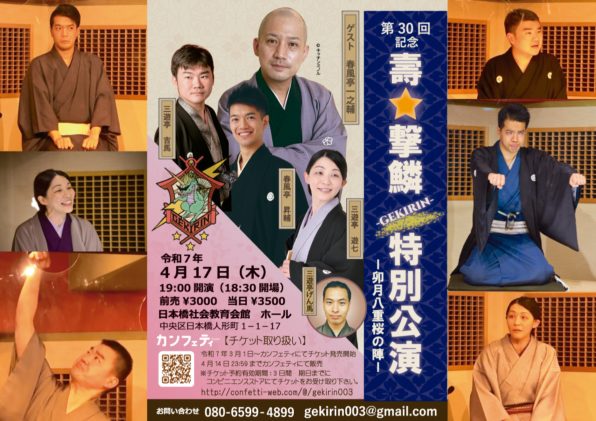 撃鱗GEKIRIN ~卯月八重桜の陣~『壽☆撃鱗 -GEKIRIN- 第30回記念特別公演』が2025年4月17日 (木)に日本橋社会教育会館 ホール(東京都中央区日本橋人形町1-1-17)にて開催されます。