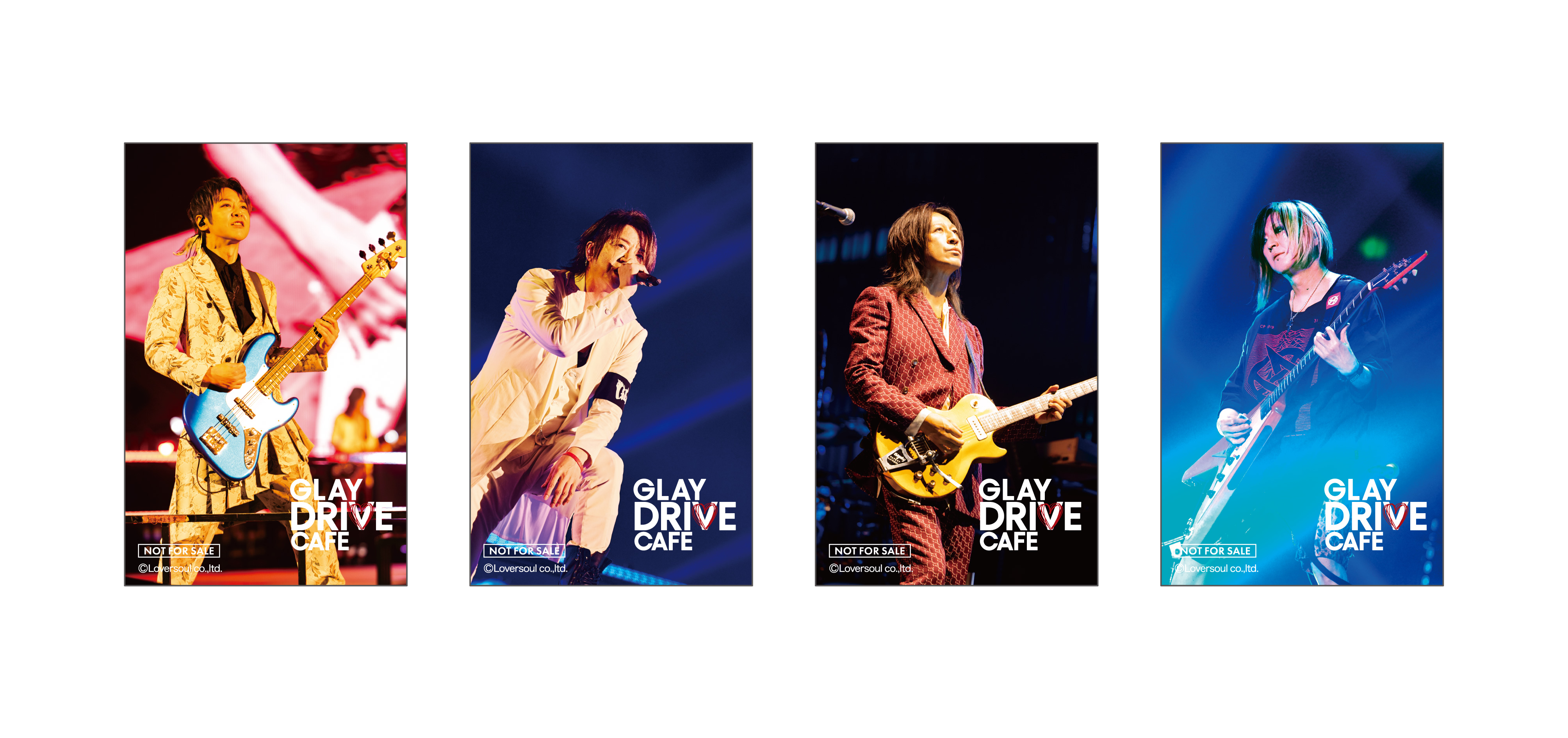 【7F】GLAY DRIVE CAFEのフードまたはドリンクのご注文1点につき、オリジナルステッカー(全4種)をランダムで1枚プレゼントいたします。