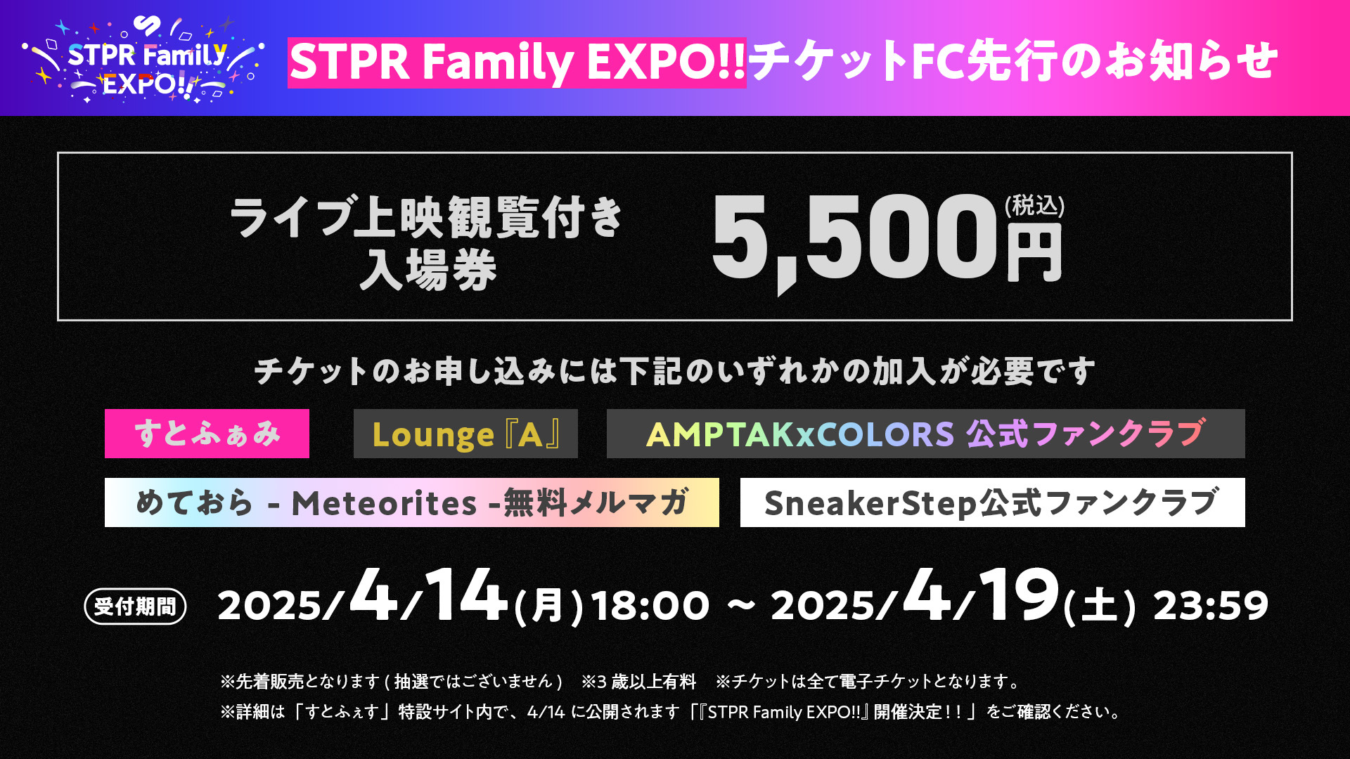 株式会社STPR (本社:東京都渋谷区 代表:柏原 真人、以下STPR)は、弊社として初めてのイベントとなる『STPR Family EXPO!!』を2025年5月3日(土)・4日(日)にぴあアリーナMM(神奈川県横浜市西区)にて開催することをお知らせいたします。