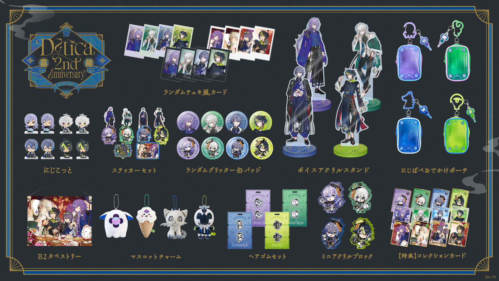 VTuberグループ「にじさんじ」所属の星導ショウ、叢雲カゲツ、小柳ロウ、伊波ライの4名による「Dytica」の活動2周年を記念した、「Dytica 2nd Anniversary」グッズが登場!