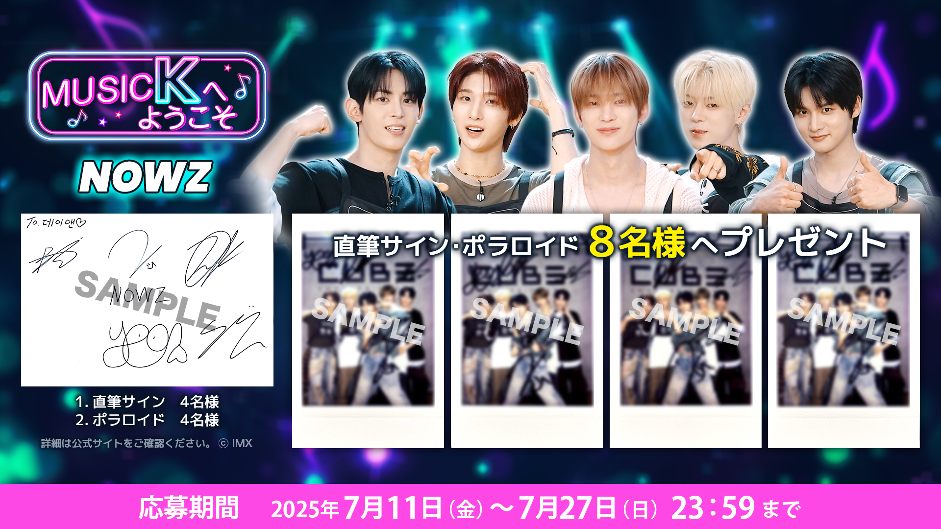 「Music Kへようこそ!」最新話更新を記念して、NOWZの直筆サインとポラロイドが抽選で8名様に当たる豪華プレゼント企画を本日18時より実施。Music Kの公式X、および公式サイトをご確認のうえ詳細をお待ちください。