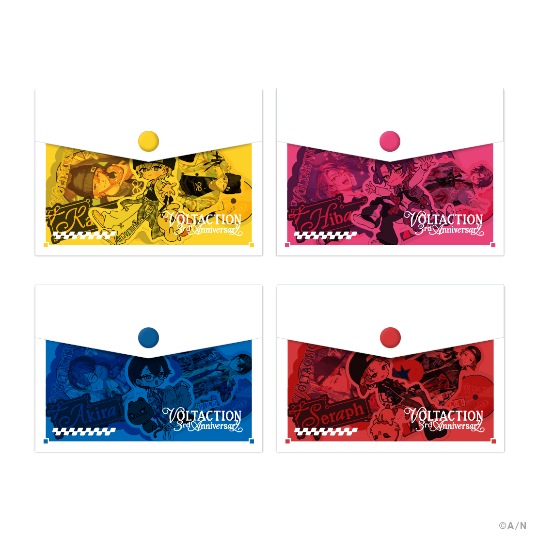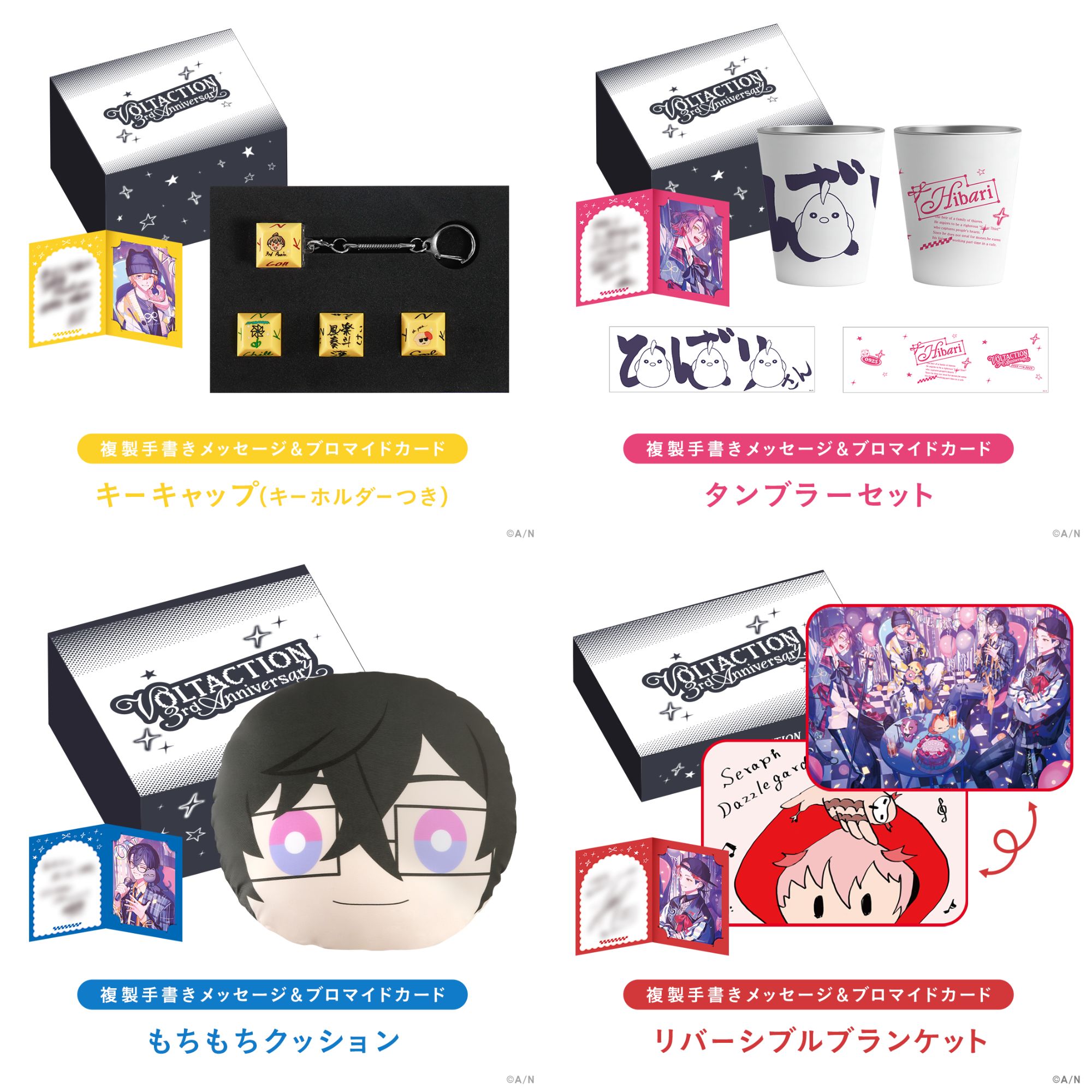 当社が運営するバーチャルライバーグループ「にじさんじ」所属の風楽奏斗、渡会雲雀、四季凪アキラ、セラフ・ダズルガーデンによるユニット「VOLTACTION」のデビュー3周年を記念した新グッズが登場!