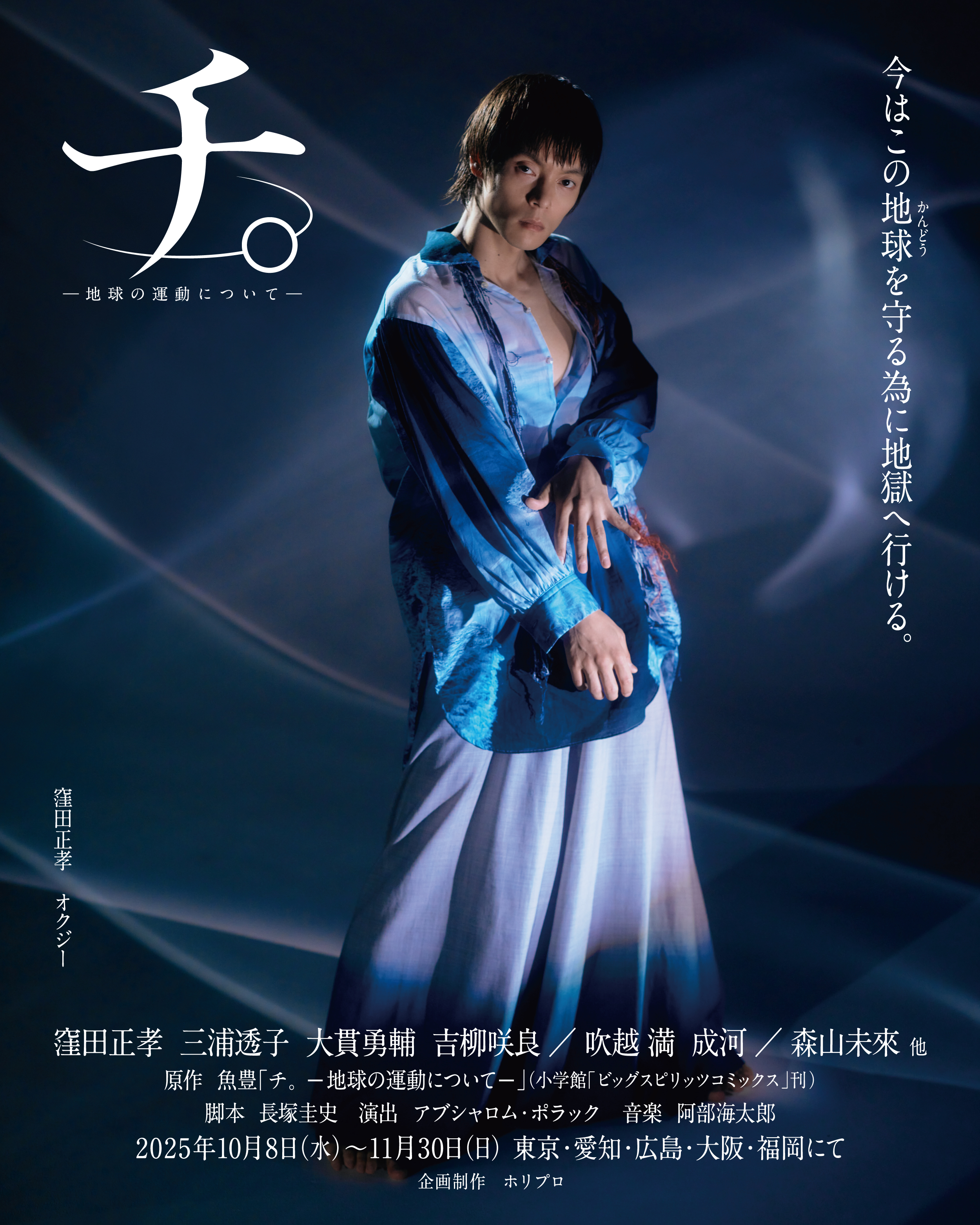 原作・魚豊/漫画「チ。 ―地球の運動について―」が2025年10月に舞台化決定!本作は、地球の真理を知ることに魅せられ命を懸ける人間たちを描いた衝撃作。メインキャスト7名が集合したキービジュアルと全身ソロビジュアルが解禁された。さらに、オフィシャルプロモーションソングにPK shampoo「星」が決定。東京公演チケットはホリプロステージにて7月13日(日)まで先着先行中。