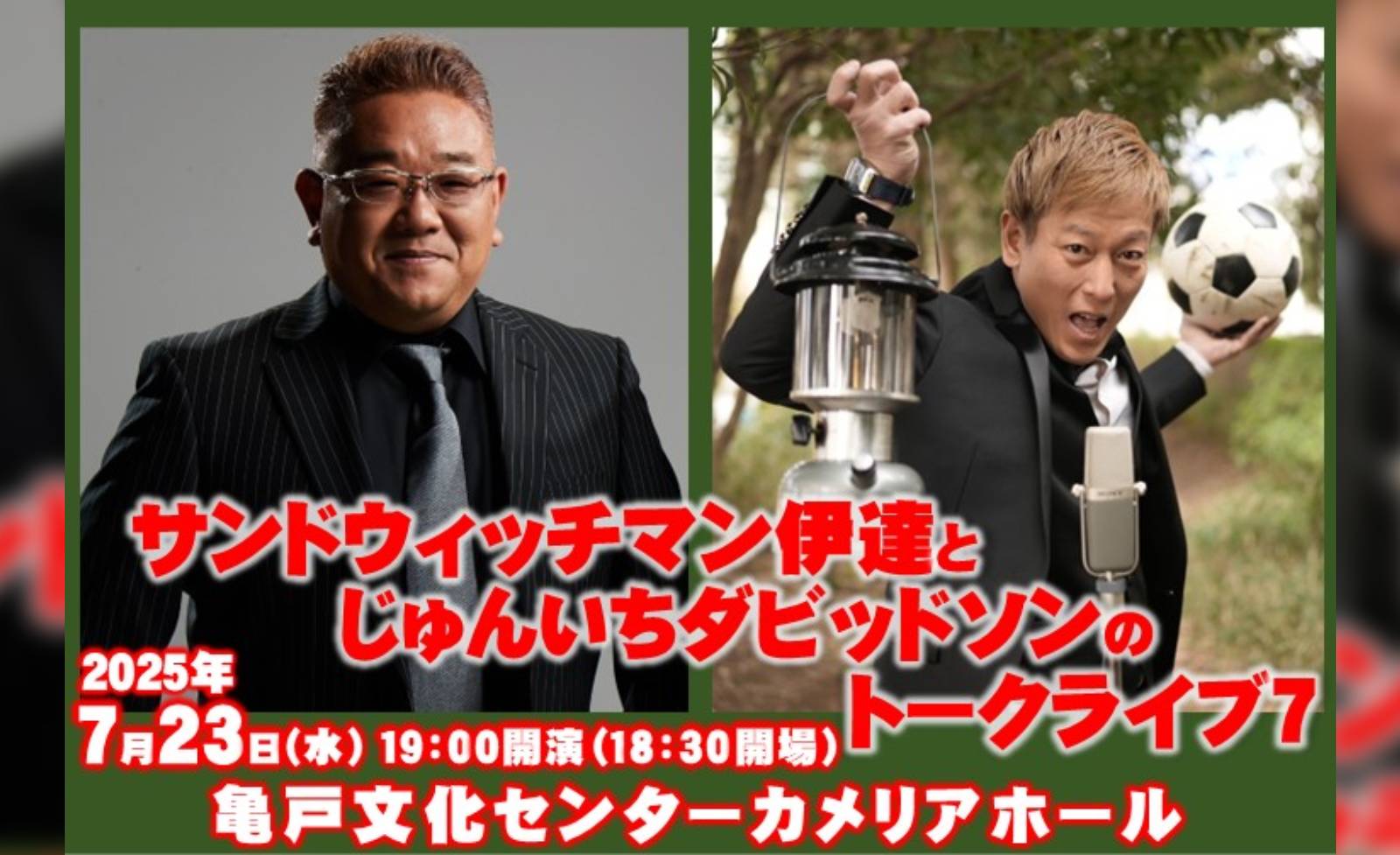2023年1月の初演以降、大好評につき定期的に上演されてきた「サンドウィッチマン伊達とじゅんいちダビッドソンのトークライブ」シリーズ。この夏、約半年ぶりに第7弾の開催が決定!