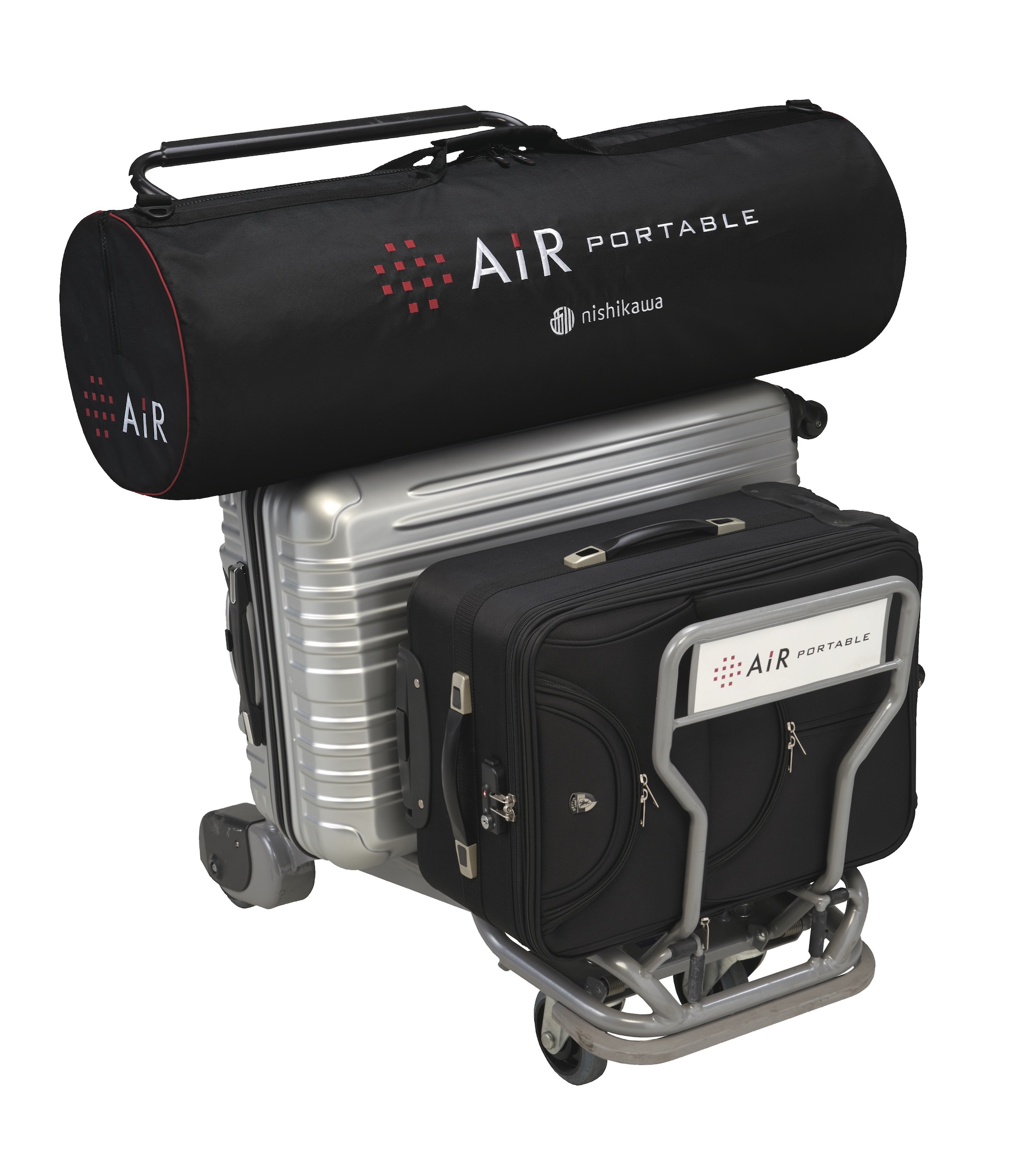 [エアーポータブル]は、アスリートの遠征やビジネスマンの出張などの宿泊施設で快適な眠りを提供する持ち運び用の[エアー]。モバイルマットは、一枚プラスするだけで[エアー]の機能を発揮し、快眠をサポートします。クッションLは、座面と背面で硬さを使いわけでき、優れた体圧分散で長時間の着座でも快適にサポートします。