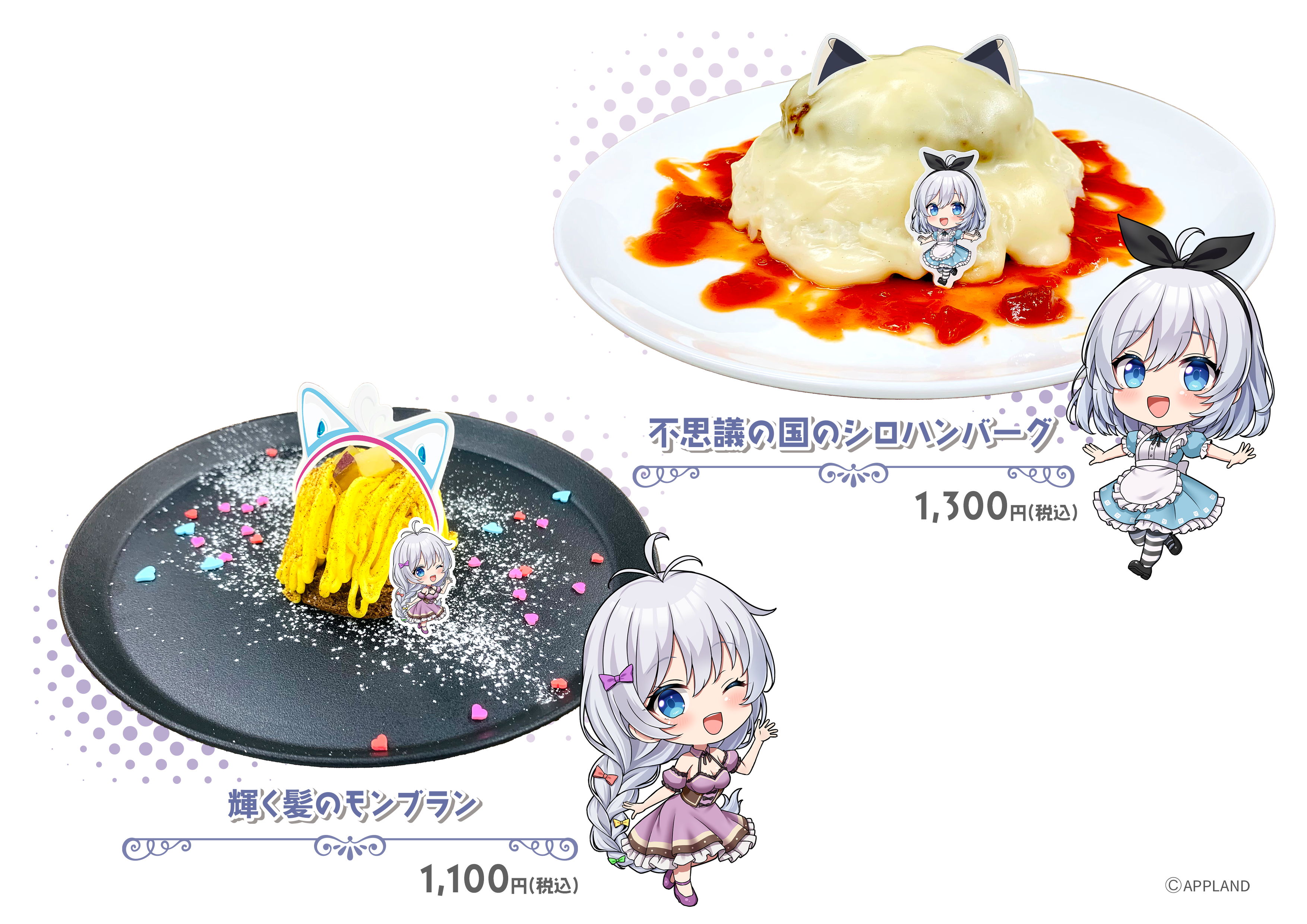 今回のコラボでは、限定メニューや限定グッズに加え、一部店舗ではコラボ仕様の店内装飾もお楽しみいただけます!特に、限定メニューには電脳少女シロが自ら考案したメニューもございますので、ぜひお近くのDiCEまたはAIMへ足を運んでみてください!